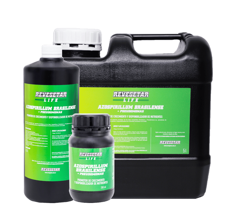 Biofertilizante compuesto por bacterias beńeficas de los tipos Azospirillum Brasilense y Pseudomonas sp., promotoras de fitohormonas naturales en las plantas y disponibilizadoras de nutrientes presentes en el suelo.